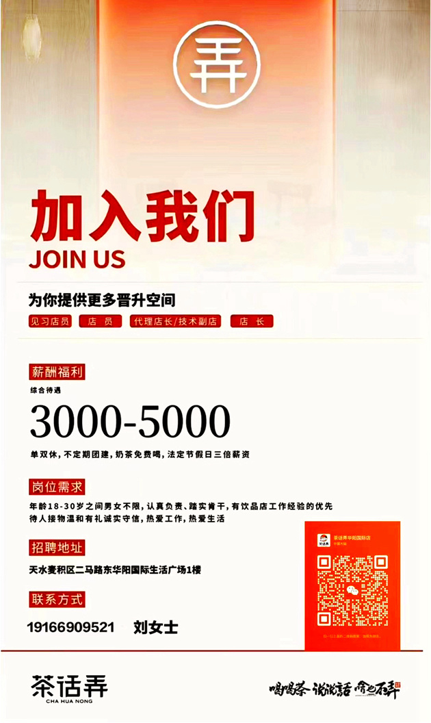 天水市麥積區(qū)茶話弄鮮茶館招聘啟事