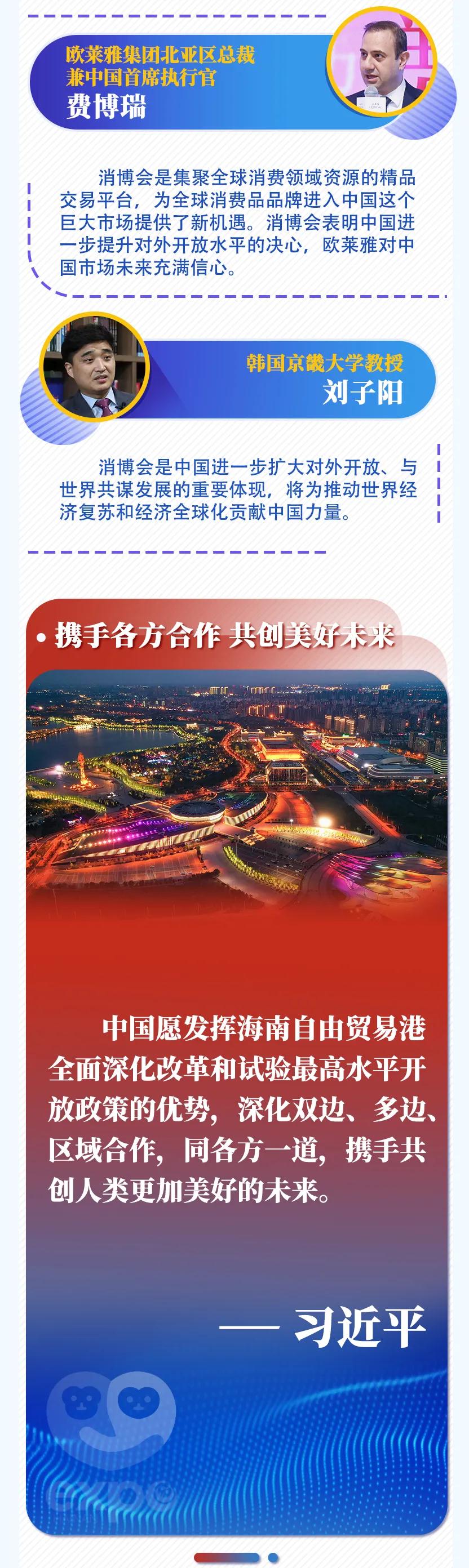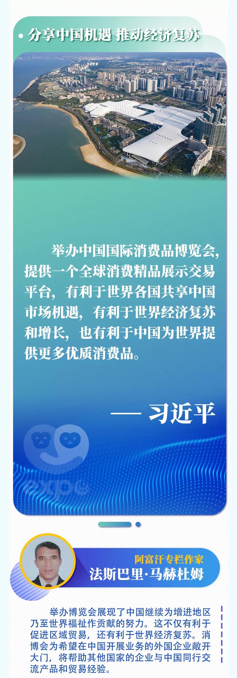 新華社北京5月7日電 首屆中國國際消費品博覽會6日在海南省?谑虚_幕,國家主席習近平致賀信。多國人士表示,舉辦國際消費品博覽會不僅是中國同各國共享發(fā)展機遇的重大舉措,還將對各國加強合作、實現(xiàn)互利共贏產(chǎn)生重要影響。
