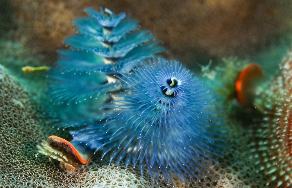 這是海南三亞蜈支洲島海域海洋牧場中的圣誕樹管蟲(2021年5月23日攝)。新華社記者 楊冠宇 攝