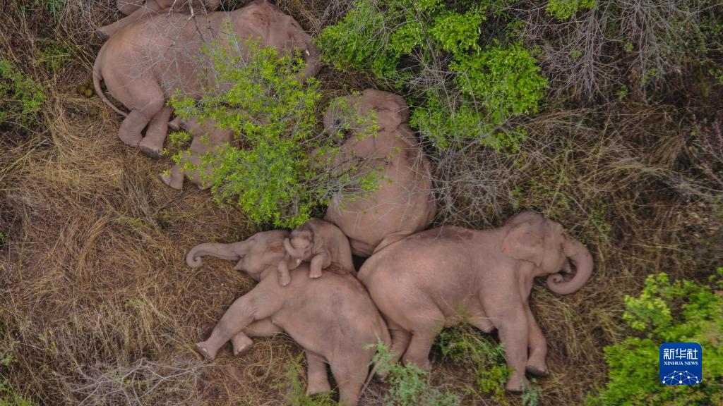 這是2021年6月7日在云南省昆明市晉寧區(qū)夕陽(yáng)彝族鄉(xiāng)拍攝的野象(無(wú)人機(jī)照片)。新華社發(fā)