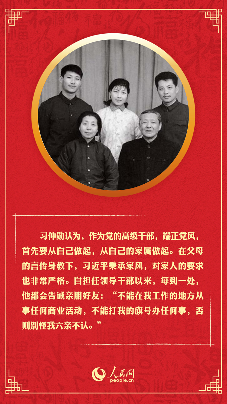 “千家萬戶都好,國(guó)家才能好,民族才能好。”在中國(guó)傳統(tǒng)文化中,“家國(guó)天下”的情懷浸入每一個(gè)中國(guó)人的骨髓血脈。家庭是社會(huì)的基本細(xì)胞,是人生的第一所學(xué)校。正是這個(gè)課堂,塑造了習(xí)近平的家國(guó)情懷,也成為他修身齊家治國(guó)理政的信念源泉。新春佳節(jié),一起回顧習(xí)近平的家風(fēng)故事,學(xué)習(xí)以家風(fēng)涵養(yǎng)初心使命。