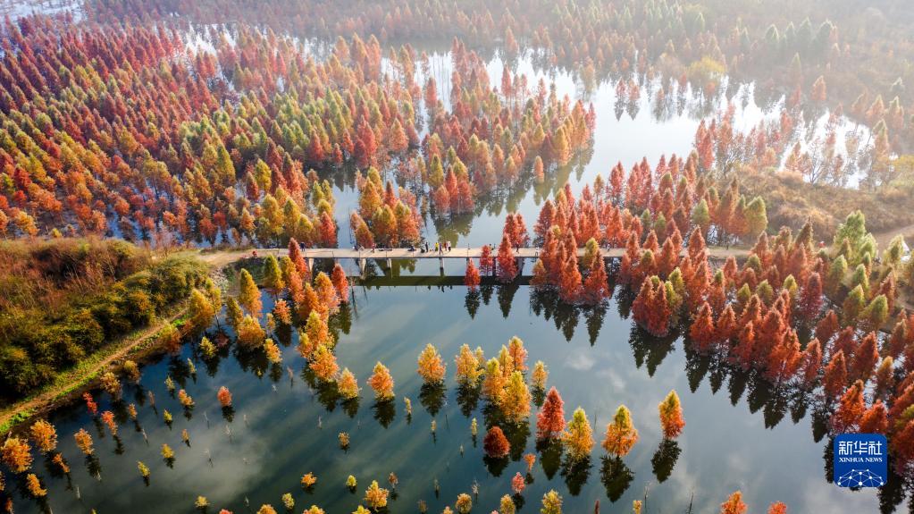 2021年12月10日拍攝的云南省昆明市的甸尾村水杉濕地一景(無人機照片)。新華社記者 胡超 攝