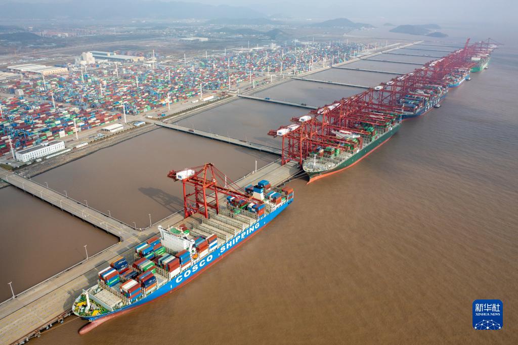 虎年“雨水”節(jié)氣,寧波舟山港,塔吊林立,一片繁忙。