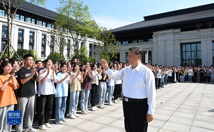 6月8日,中共中央總書記、國(guó)家主席、中央軍委主席習(xí)近平在四川考察。這是8日下午,習(xí)近平在宜賓學(xué)院考察時(shí),向師生們揮手致意。新華社記者 李學(xué)仁 攝