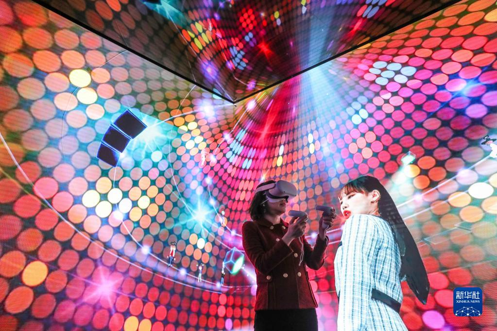 2022年3月1日,一名女子在西班牙巴塞羅那2022世界移動(dòng)通信大會(huì)上通過虛擬現(xiàn)實(shí)技術(shù)在“元宇宙”中體驗(yàn)音樂會(huì)。新華社記者 鄭煥松 攝