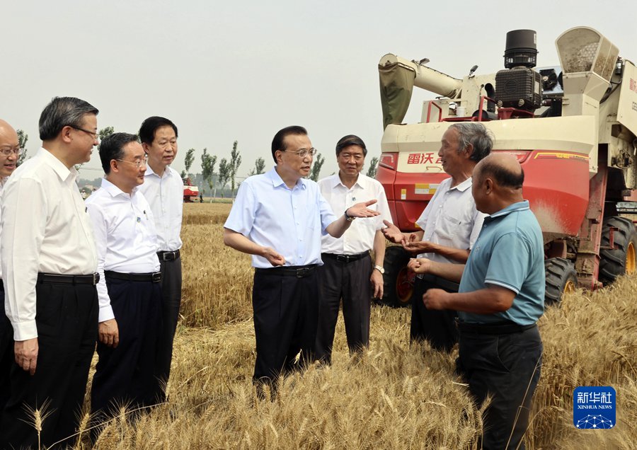 6月21日,中共中央政治局常委、國(guó)務(wù)院總理李克強(qiáng)在河北高碑店、涿州考察。這是李克強(qiáng)在高碑店方官鎮(zhèn)小麥地里,與種糧農(nóng)戶等交談。 新華社記者 劉衛(wèi)兵 攝