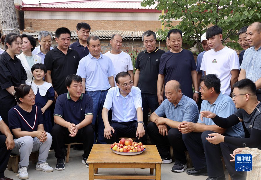 6月21日,中共中央政治局常委、國(guó)務(wù)院總理李克強(qiáng)在河北高碑店、涿州考察。這是李克強(qiáng)來(lái)到高碑店大鋪村,察看晾曬的小麥后,與村民圍坐交談。 新華社記者 劉衛(wèi)兵 攝