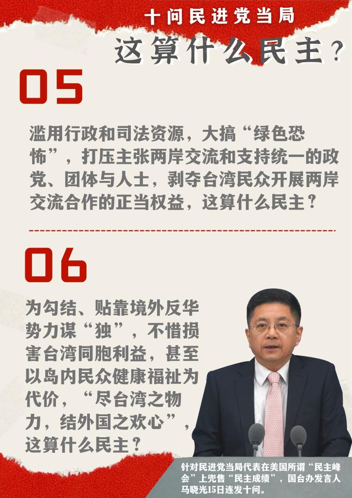 為勾結(jié)、貼靠境外反華勢力謀“獨”,不惜損害臺灣同胞利益,甚至以島內(nèi)民眾健康福祉為代價,“盡臺灣之物力,結(jié)外國之歡心”,這算什么民主?