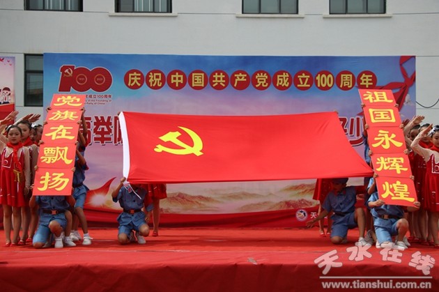 在鮮艷的黨旗、國(guó)旗、隊(duì)旗下,經(jīng)開區(qū)黨工委委員、管委會(huì)副主任鞏彩環(huán)宣布文藝匯演活動(dòng)開幕。全體學(xué)生揮舞國(guó)旗,跑入操場(chǎng),擺出了“100”和“黨徽”圖案,并高唱《唱支山歌給黨聽》,以此表達(dá)全體師生對(duì)黨百歲華誕的祝福,堅(jiān)定追隨黨的信心和決心。隨后,管委會(huì)副主任石茂元發(fā)表“六一”致辭,鼓勵(lì)全體師生學(xué)好黨史,“知黨恩、聽黨話、跟黨走”。校長(zhǎng)伏曉軍發(fā)表講話,勉勵(lì)全體學(xué)生從現(xiàn)在做起,養(yǎng)成良好品德,努力學(xué)習(xí),健康成長(zhǎng),為民族爭(zhēng)光,為祖國(guó)爭(zhēng)光,為家鄉(xiāng)爭(zhēng)光。出席本次活動(dòng)的還有經(jīng)開區(qū)管委會(huì)辦公室、相關(guān)部門和局級(jí)單位負(fù)責(zé)人。