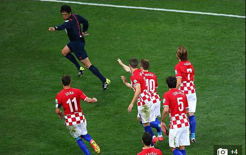 北京時(shí)間6月18日,據(jù)英格蘭媒體《每日郵報(bào)》的消息,在巴西世界杯揭幕戰(zhàn)中擔(dān)任主裁判的西村雄一因?yàn)樵诎臀鲗﹃?A target=_blank>克羅地亞隊(duì)的揭幕戰(zhàn)中的一次誤判成為了媒體關(guān)注的焦點(diǎn),他的誤判直接導(dǎo)致了克羅地亞隊(duì)的輸球。據(jù)悉他將擔(dān)任洪都拉斯與厄瓜多爾的比賽的第四裁判,從揭幕戰(zhàn)的主裁判一直貶到第四裁判,這顯然是國際足聯(lián)對他的一個(gè)懲罰。