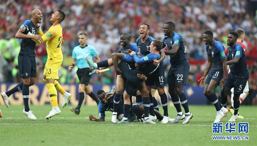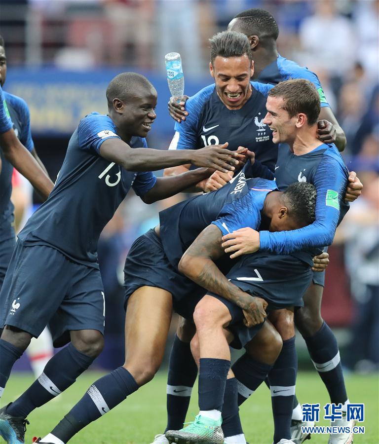 7月15日,法國(guó)隊(duì)球員格列茲曼(前)在比賽后慶祝勝利。當(dāng)日,在莫斯科進(jìn)行的2018俄羅斯世界杯足球賽決賽中,法國(guó)隊(duì)以4比2戰(zhàn)勝克羅地亞隊(duì),繼1998年后再奪世界杯冠軍。 新華社記者李尕?cái)z