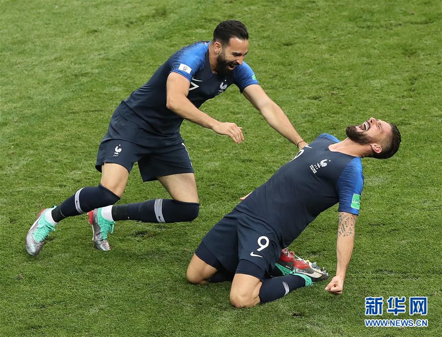 7月15日,法國(guó)隊(duì)球員吉魯(右)與拉米在比賽后慶祝勝利。當(dāng)日,在莫斯科進(jìn)行的2018俄羅斯世界杯足球賽決賽中,法國(guó)隊(duì)以4比2戰(zhàn)勝克羅地亞隊(duì),繼1998年后再奪世界杯冠軍。 新華社記者徐子鑒攝
