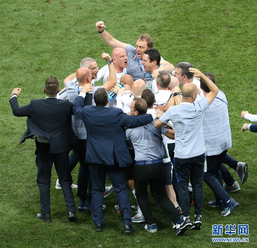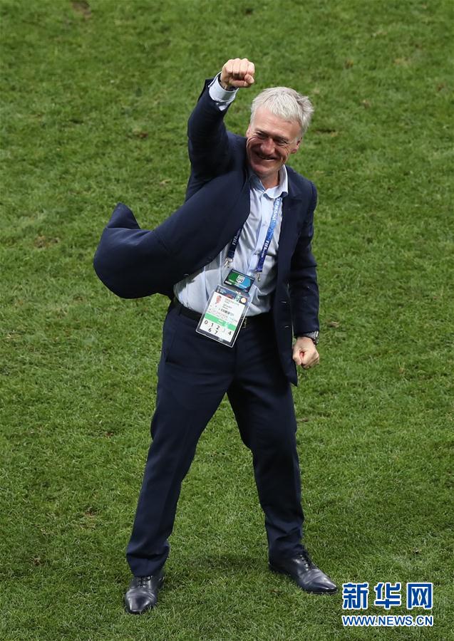7月15日,法國(guó)隊(duì)主教練德尚在比賽后慶祝勝利。當(dāng)日,在莫斯科進(jìn)行的2018俄羅斯世界杯足球賽決賽中,法國(guó)隊(duì)以4比2戰(zhàn)勝克羅地亞隊(duì),繼1998年后再奪世界杯冠軍。 新華社記者徐子鑒攝