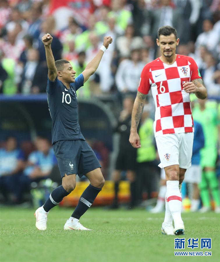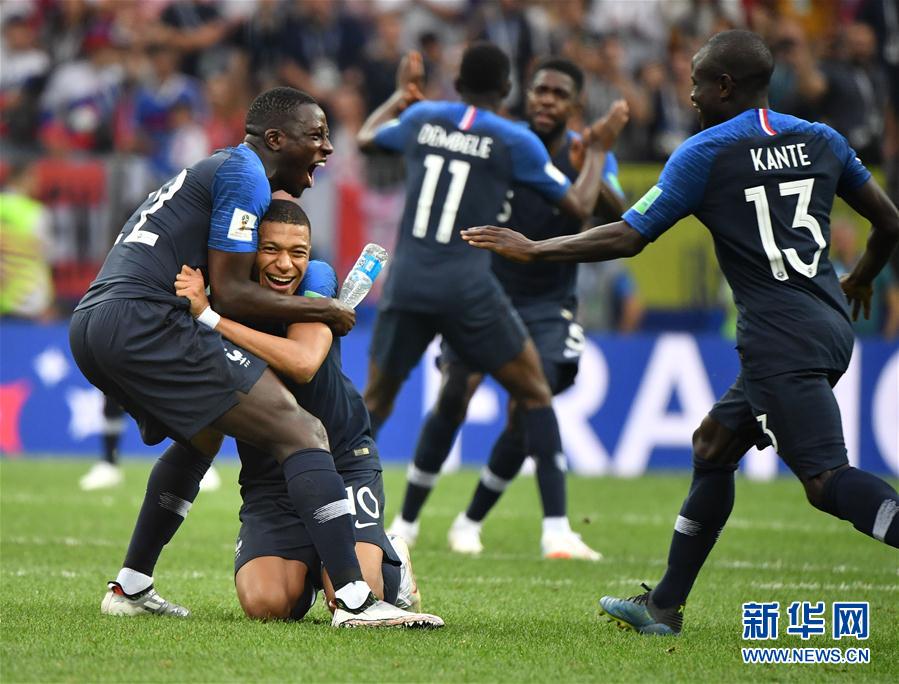 7月15日,法國(guó)隊(duì)球員姆巴佩(左)在獲勝后慶祝。當(dāng)日,在莫斯科進(jìn)行的2018俄羅斯世界杯足球賽決賽中,法國(guó)隊(duì)以4比2戰(zhàn)勝克羅地亞隊(duì),繼1998年后再奪世界杯冠軍。 新華社記者費(fèi)茂華攝