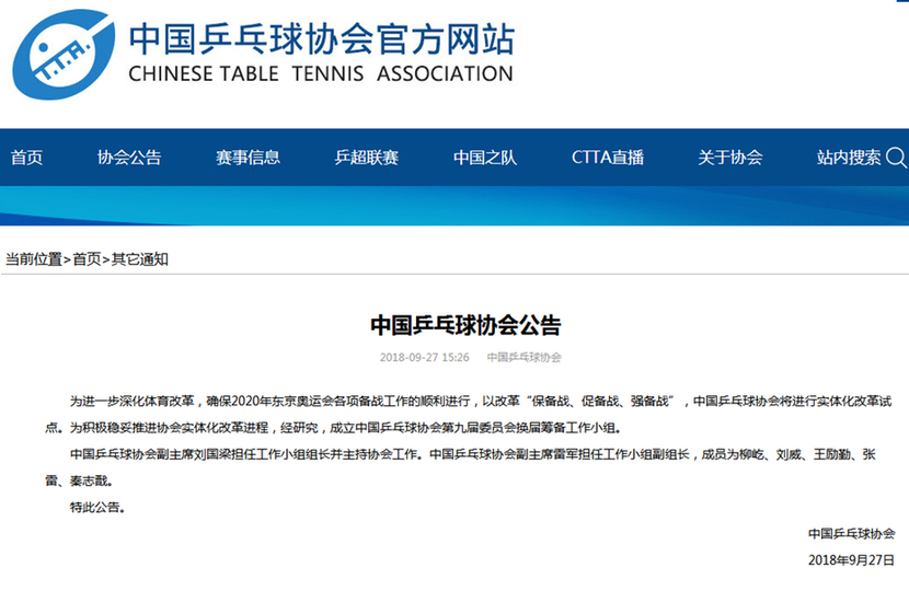 中國(guó)乒乓球協(xié)會(huì)公告原文如下: