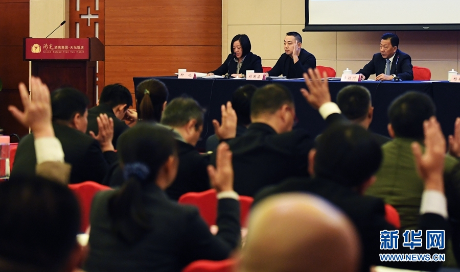 12月1日,劉國(guó)梁(后排中)和與會(huì)代表在換屆投票環(huán)節(jié)舉手表決。 新華社記者陶希夷攝
