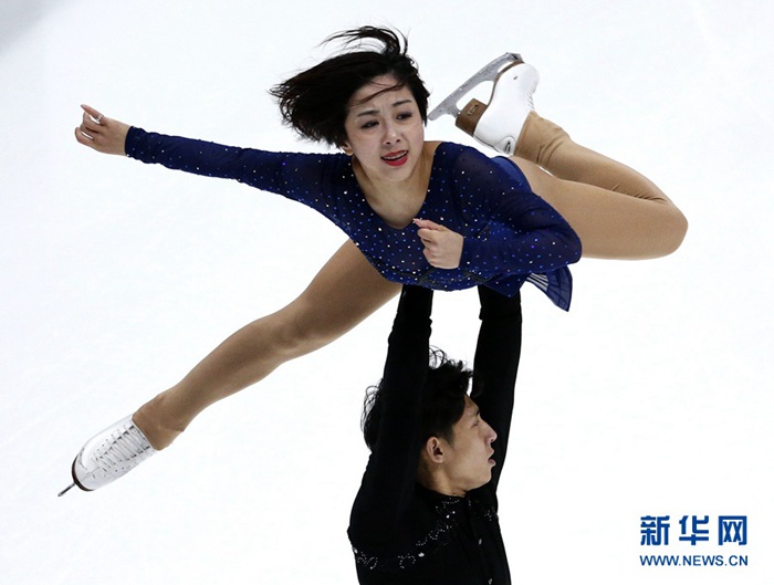 2月9日,中國選手隋文靜(上)/韓聰在雙人滑自由滑比賽中。新華社發(fā)(趙漢榮 攝)