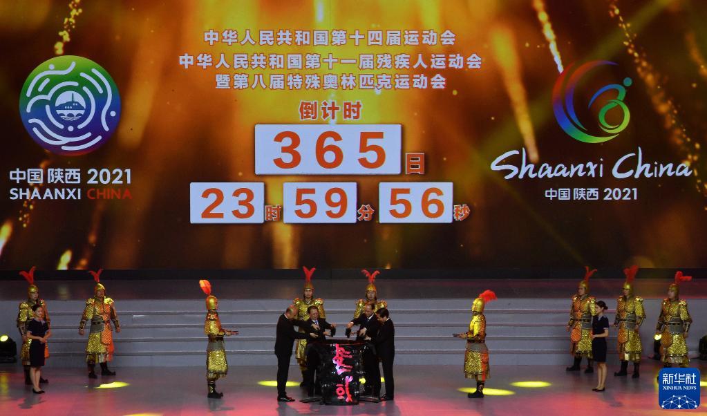 2020年9月15日,第十四屆全運(yùn)會(huì)迎來(lái)倒計(jì)時(shí)一周年。這是9月15日在西安奧體中心體育館拍攝的中華人民共和國(guó)第十四屆運(yùn)動(dòng)會(huì)倒計(jì)時(shí)一周年活動(dòng)現(xiàn)場(chǎng)。新華社記者李一博攝