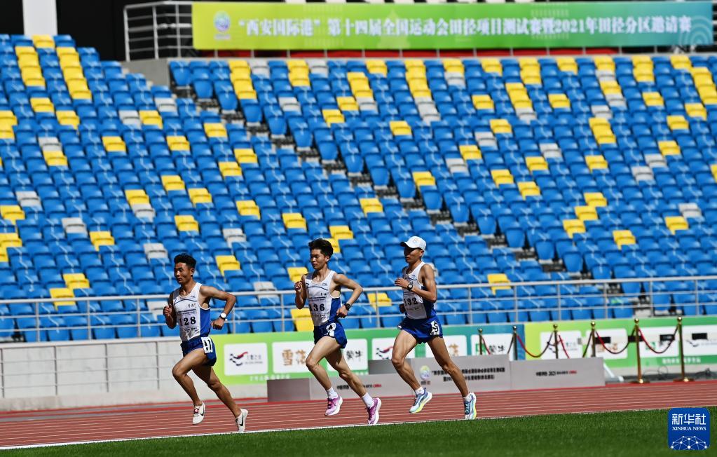 4月28日,在陜西西安舉行的第十四屆全國(guó)運(yùn)動(dòng)會(huì)田徑項(xiàng)目測(cè)試賽暨2021年田徑分區(qū)邀請(qǐng)賽(西北賽區(qū))男子組10000米決賽中,青海隊(duì)選手仁青東知布(左)以30分21秒44的成績(jī)獲得季軍。新華社記者李一博攝