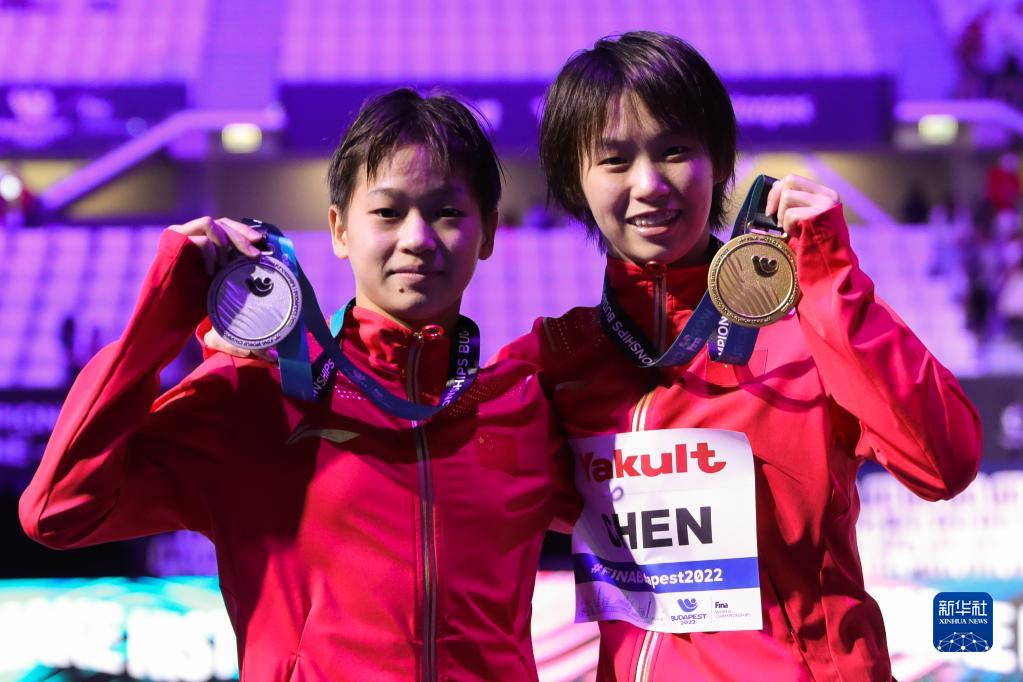 當(dāng)日,在匈牙利首都布達(dá)佩斯舉行的2022年世界游泳錦標(biāo)賽跳水項(xiàng)目女子十米臺(tái)決賽中,中國(guó)選手陳芋汐、全紅嬋包攬冠亞軍。
