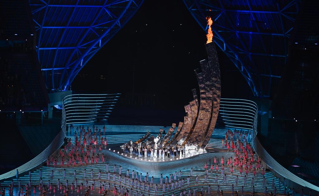 9月23日,主火炬被點燃。新華社記者 胡虎虎 攝