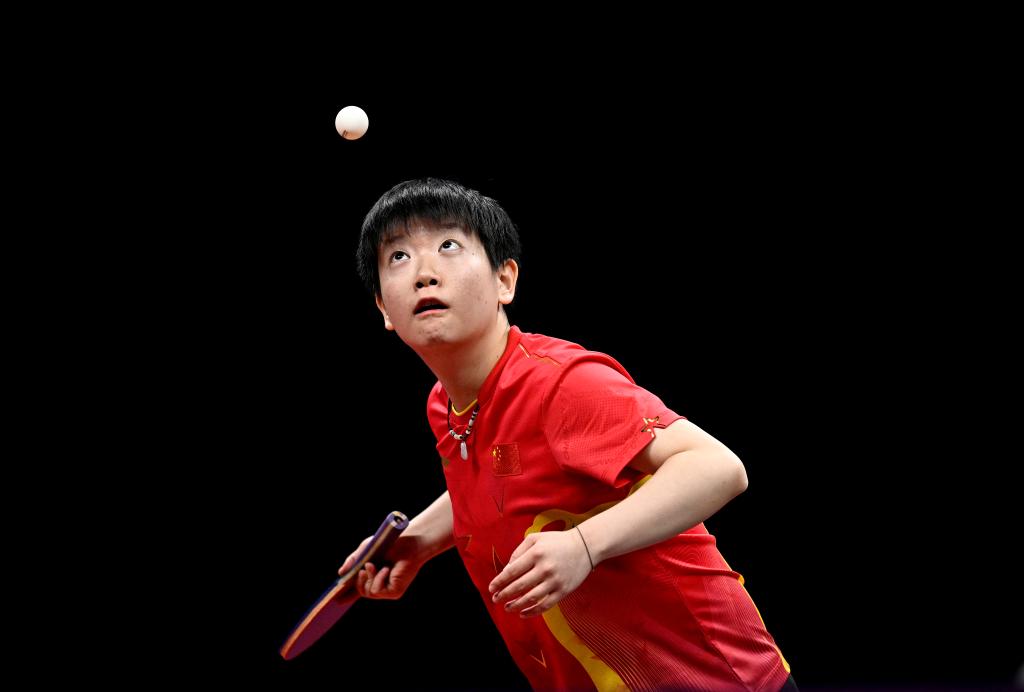10月1日,孫穎莎在比賽中。新華社記者 王鵬 攝