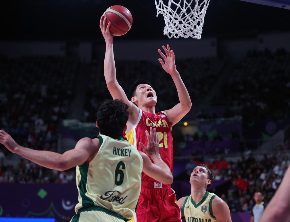 進(jìn)入次節(jié)比賽,中國隊進(jìn)攻手感更加火熱,王俊杰內(nèi)外線連續(xù)命中,幫助中國隊一度將分差拉開到15分。隨后,澳大利亞隊發(fā)揮出在內(nèi)線攻防兩端的優(yōu)勢,逐漸縮小分差。關(guān)鍵時刻,胡明軒連續(xù)命中三分穩(wěn)住領(lǐng)先局面,中國隊以46:42結(jié)束上半場。
