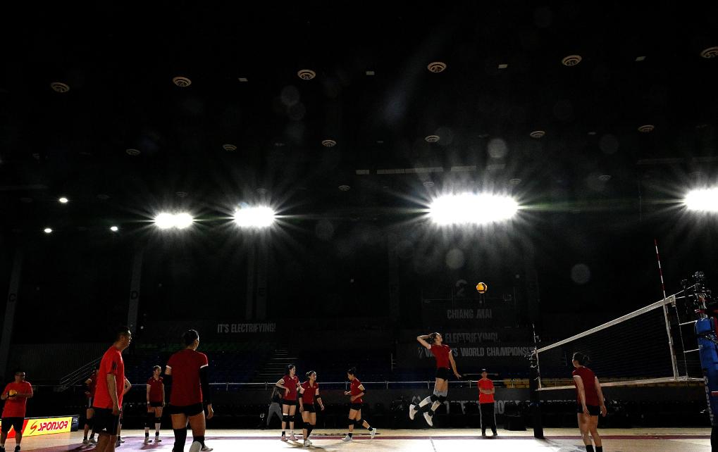 8月21日,中國(guó)女排在泰國(guó)清邁進(jìn)行賽前訓(xùn)練。新華社記者 侯昭康 攝