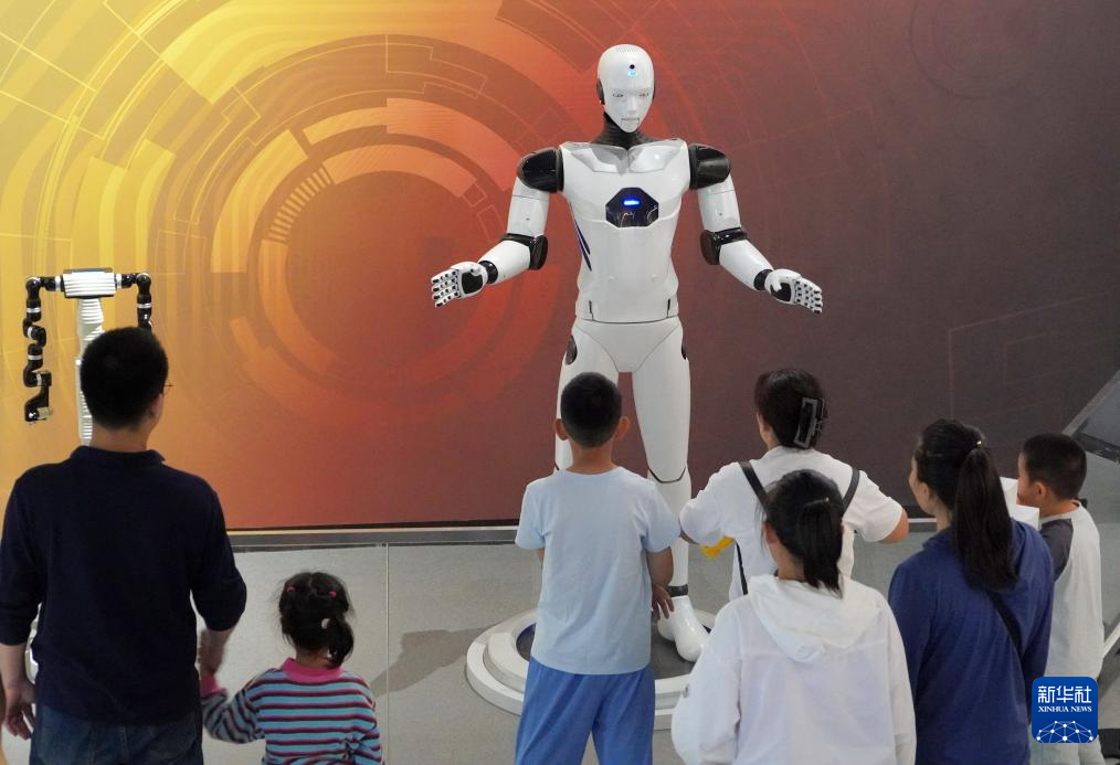 5月24日,觀眾在山東省科技館觀看人形機器人。