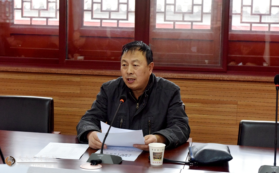 市文化和旅游局副局長尚建強主持會議,市博物館副館長高世華向與會專家詳細介紹了“吉祥中華——丁酉(2017)年天水伏羲廟春祭伏羲活動總體方案”和市博物館安保工作實施方案和預(yù)案,與會專家對該方案涉及重點區(qū)域進行了實地勘察,并對活動可能存在的風險進行了討論分析。會議評估認為,該活動方案和預(yù)案措施完善,分工合理,職責明確,可操作性強。原則上同意實施方案。