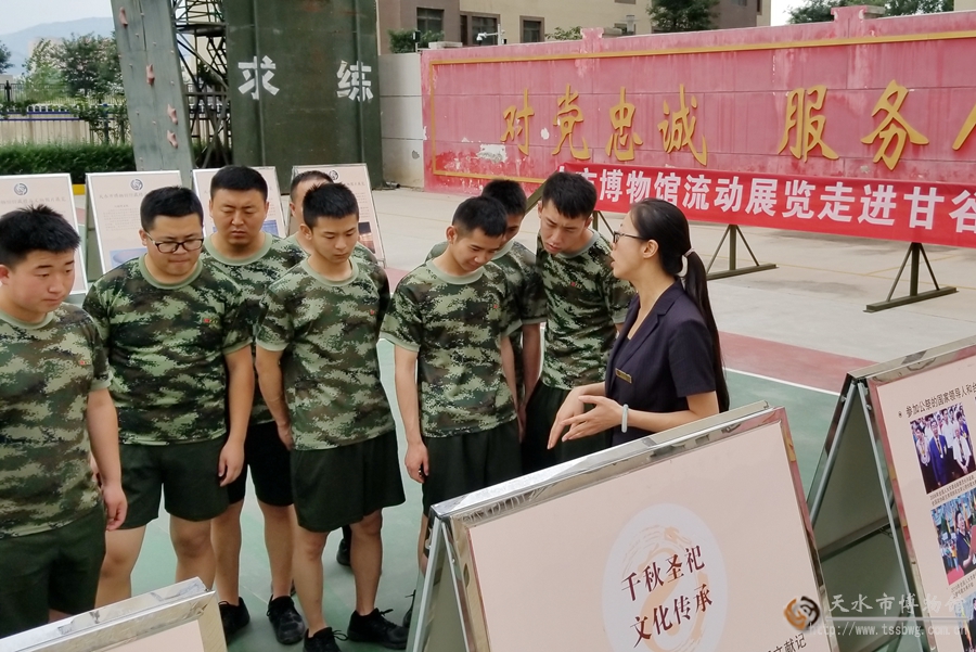 2018年7月20日上午,天水市博物館接待服務(wù)部的工作人員在部室主任杜麗敏的帶領(lǐng)下驅(qū)車(chē)40公里,前往甘谷縣公安消防大隊(duì)舉辦流動(dòng)展覽進(jìn)部隊(duì)活動(dòng)。