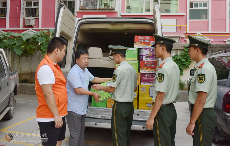 當(dāng)天,劉玉璞副館長代表天水市博物館黨支部向正在值勤和訓(xùn)練的特勤中隊(duì)官兵送去了飲料、方便面等。在隨后的活動(dòng)中,劉玉璞與特勤中隊(duì)隊(duì)長胡樹喬交流黨課學(xué)習(xí)成果,共同探討了新形勢下開展軍民共建以及黨員學(xué)習(xí)活動(dòng)交流等,進(jìn)一步加強(qiáng)了雙方交流,密切了軍民關(guān)系。