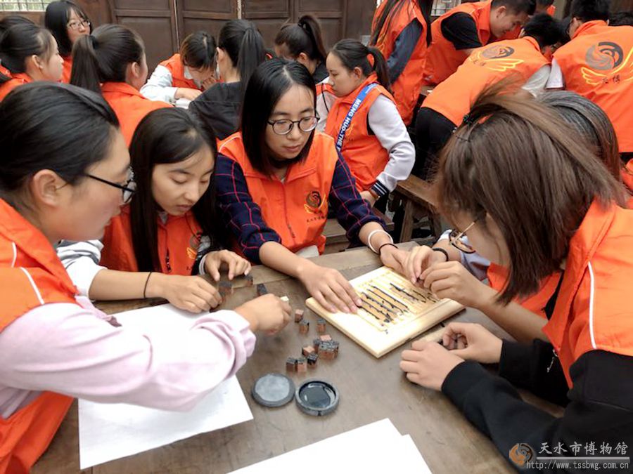 初秋時(shí)節(jié),涼意拂人 ,9月8日,天水民俗博物館為天水師范學(xué)院文博系的28名志愿者開展了“活字印刷術(shù)”社教活動(dòng)。旨在通過社教活動(dòng)提高志愿者參與博物館工作的積極性,夯實(shí)專業(yè)知識(shí)和業(yè)務(wù)能力,讓志愿者以飽滿的熱情在志愿服務(wù)崗位上發(fā)光發(fā)熱。