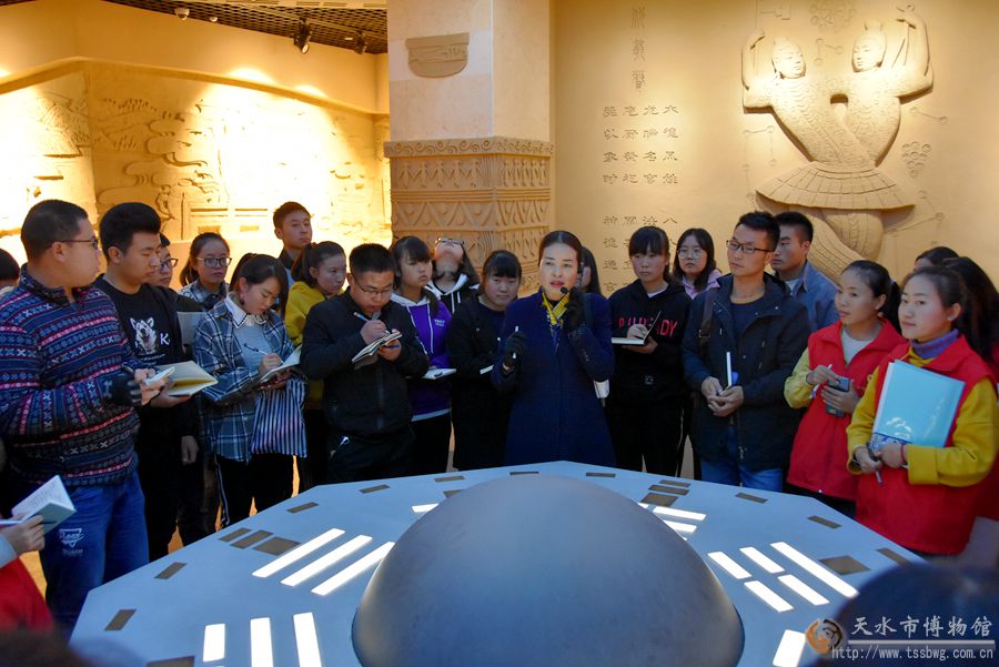 10月20日下午,接待服務(wù)部講解員周秀蘭、郭潔就易學(xué)文化和中國古代青銅器對志愿者進(jìn)行了培訓(xùn)。周老師通過博物館序廳多媒體八卦臺,以伏羲先天八卦為基礎(chǔ)向志愿者展開介紹了中國博大精深的易學(xué)文化。郭潔則以PPT的形式,從中國古代青銅器的發(fā)展簡史出發(fā),結(jié)合天水市博物館展廳藏品分別介紹了中國古代青銅器中的飪食器、酒器和水器。
