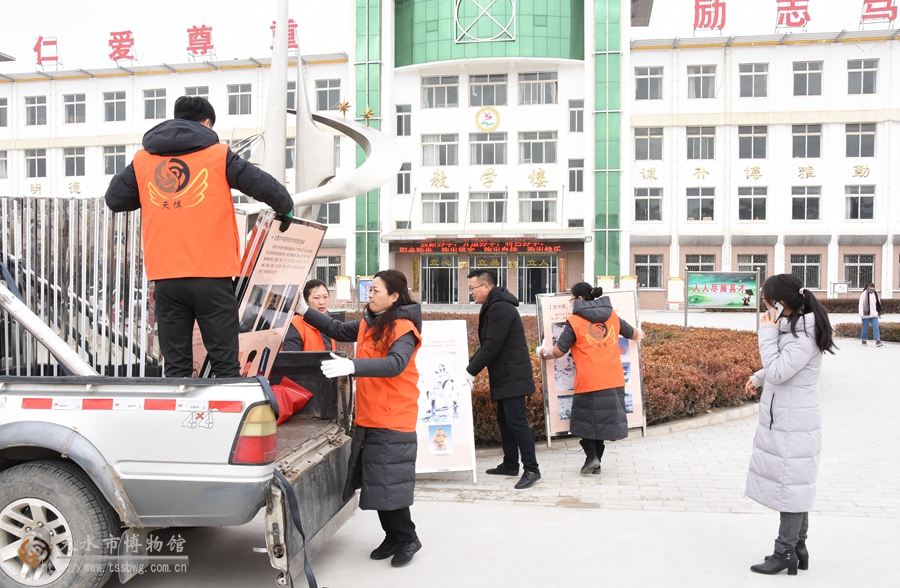 當(dāng)天下午,市博物館志愿隊(duì)帶著展板來到張家川縣第三中學(xué),為該校500多名師生送去《一畫開天,肇啟文明——人祖伏羲功績(jī)展》《天水市博物館館藏精品文物展》兩個(gè)大型流動(dòng)展覽,讓師生們?cè)谛@充分感受以伏羲文化為主的天水傳統(tǒng)文化,天水市博物館館藏精品文物和博物館知識(shí)等。