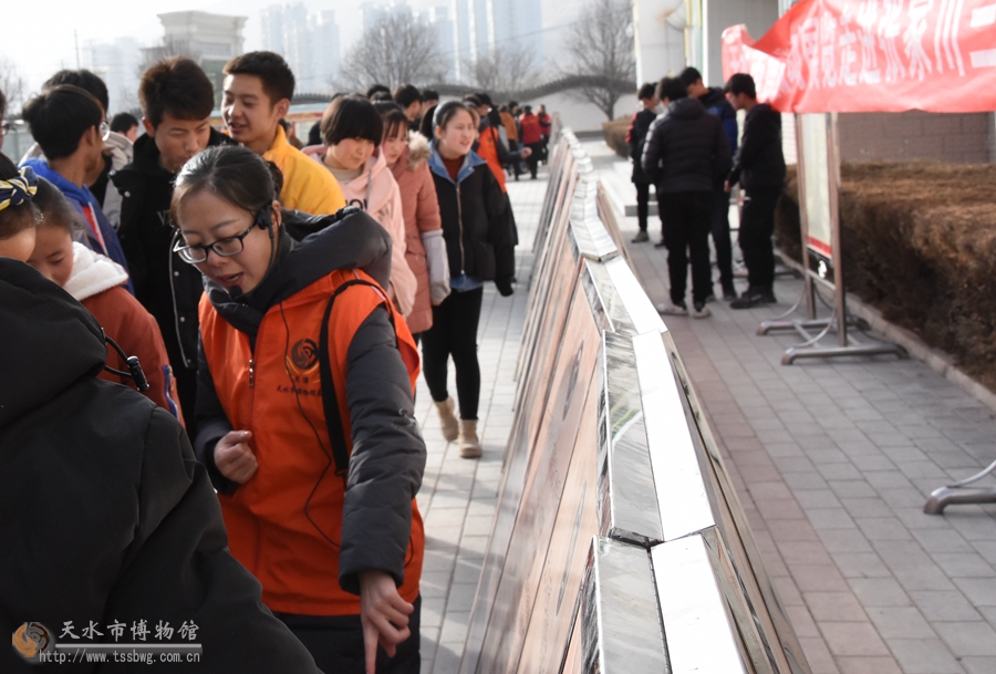12月5日,天水市博物館志愿隊(duì)7位志愿者先后來到張家川縣武警中隊(duì)和第三中學(xué),為武警官兵和學(xué)生們送去了《一畫開天,肇啟文明——人祖伏羲功績(jī)展》《天水市博物館館藏精品文物展》兩個(gè)大型流動(dòng)展覽,讓他們了解天水地方文化。