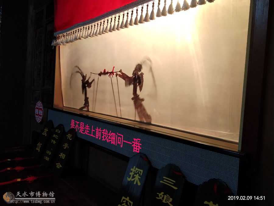皮影戲是中國漢族民間的一門古老傳統(tǒng)藝術(shù),古人稱它為“驢皮影”“影子戲”或“燈影戲”,是一種用燈光照射獸皮或紙板做成的人物剪影以表演故事的民間戲劇。表演時,藝人們在白色幕布后面,一邊操縱戲曲人物,一邊用當(dāng)?shù)亓餍械那{(diào)唱述故事,同時配以打擊樂器和弦樂,有濃厚的鄉(xiāng)土氣息。千百年來,這門古老的藝術(shù),伴隨著祖祖輩輩的先人們,度過了許多歡樂的時光。在春節(jié)即將來臨之際,天水民俗博物館計劃舉辦“民俗館里鬧新春”春節(jié)系列活動,更好的宣傳中國傳統(tǒng)民俗文化。