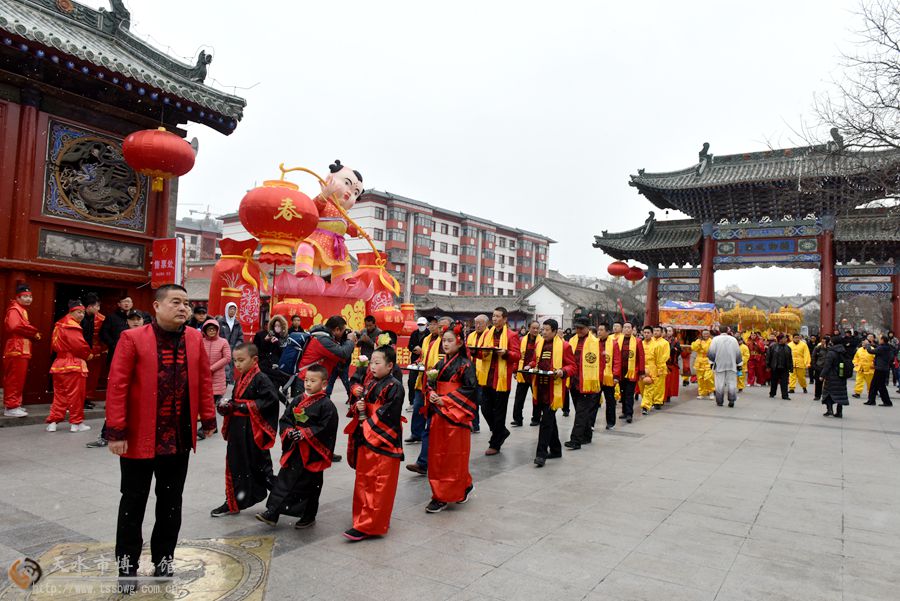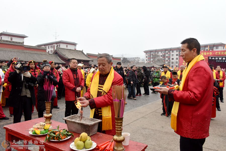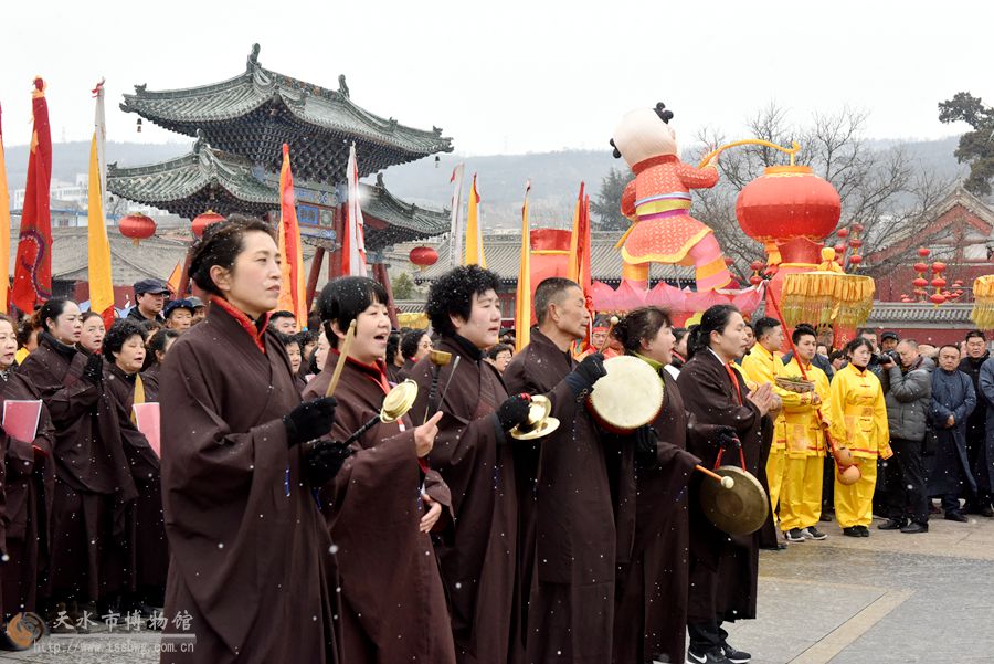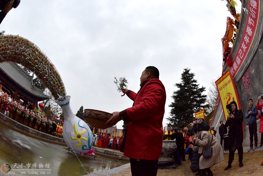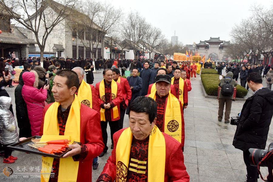 2月17(農(nóng)歷正月十三)日上午8點(diǎn)30分,天水伏羲廟內(nèi)外旌旗招展,人聲鼎沸,“祝福中華——己亥(2019)年天水伏羲廟春祭伏羲活動(dòng)”舉行隆重的迎圣水儀式,各界群眾在飛揚(yáng)的春雪中參加了活動(dòng)。