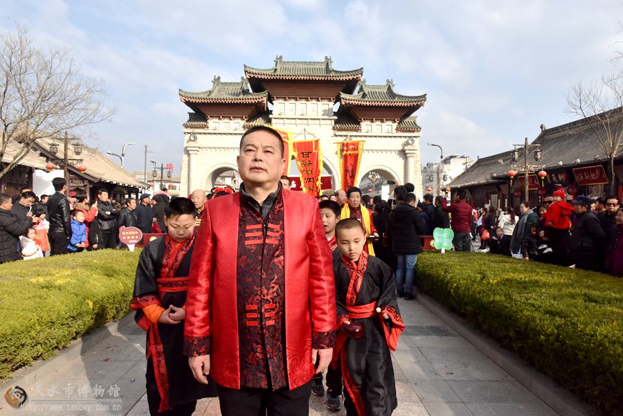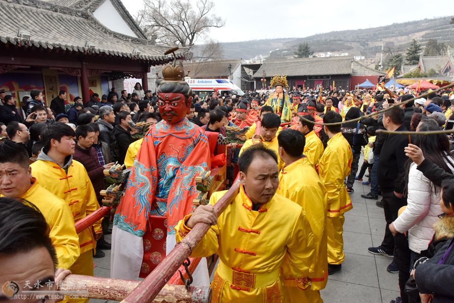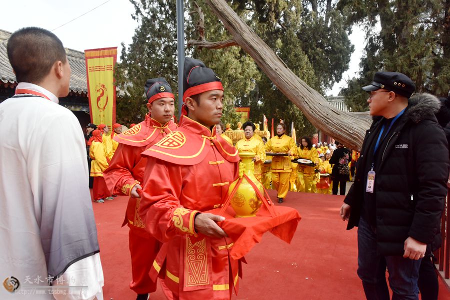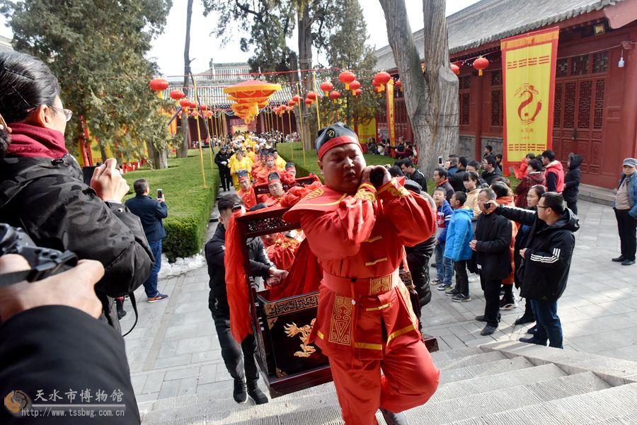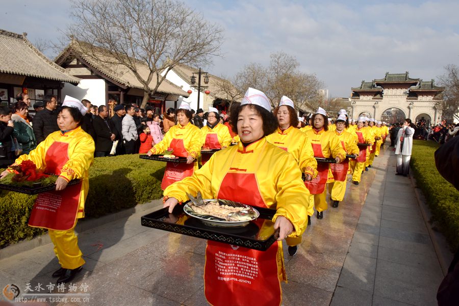 2月19日(正月十五),祝福中華——己亥(2019)年天水伏羲廟春祭伏羲活動迎獻飯儀式在先天殿月臺舉行。迎獻飯儀仗隊伍800多人從伏羲城西牌坊出發(fā),沿著女媧路至東城門進伏羲廟,一路鑼鼓喧天、旌旗飛揚,近10萬群眾觀看了儀式。