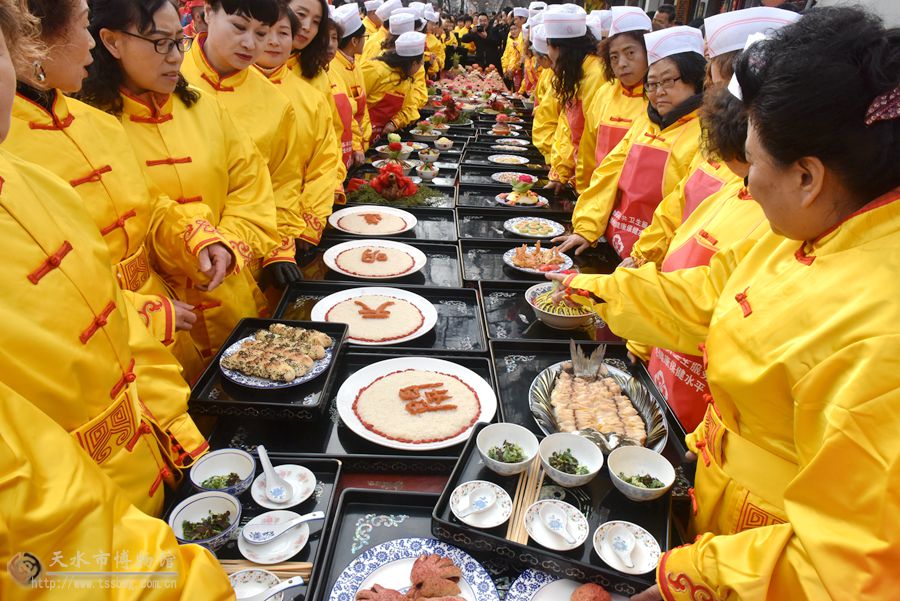 獻飯種類繁多,地域特色鮮明,以天水傳統(tǒng)菜肴為主,配以西式糕點等葷素搭配,可以說是七盤子、八大碗,還有時令鮮果、主食和清酒等。