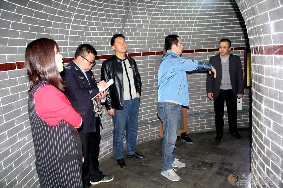 按照《天水市文化和旅游局關(guān)于展開安全生產(chǎn)自查工作的通知》文件要求,4月1日下午,由天水市博物館副館長高世華帶隊,保衛(wèi)科、古建筑保護與園林部、天水民俗博物館相關(guān)人員組成的自查小組對天水民俗博物館和胡氏民居建筑安全工作進行檢查。檢查內(nèi)容主要是天水民俗博物館安、消防設(shè)備設(shè)施的完善情況,安全管理制度的落實情況以及安全隱患,重點對南北宅子地下地道滲水情況進行了檢查。