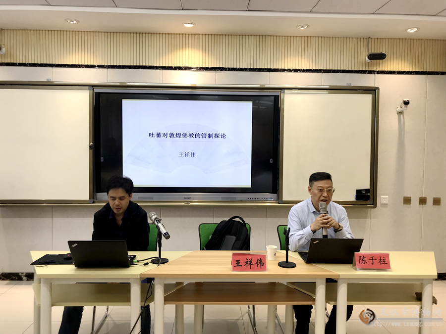上半場(chǎng)講座由蘭州財(cái)經(jīng)大學(xué)教授王祥偉主講了《吐蕃對(duì)敦煌佛教的管制探論》,王教授從吐蕃時(shí)期敦煌佛教的發(fā)展、吐蕃對(duì)敦煌佛教的管制幾方面進(jìn)行了講授,通過(guò)對(duì)第一手文獻(xiàn)資料進(jìn)行細(xì)致的解讀考證,認(rèn)為吐蕃統(tǒng)治時(shí)期基本沿習(xí)了唐代對(duì)敦煌佛教的統(tǒng)治政策,但為了有利于自己政權(quán)的統(tǒng)治推行了度牒制度、編制專門的僧尼名籍、向寺院或僧人征稅、控制寺院占有土地、核算監(jiān)督寺院財(cái)產(chǎn)等政策來(lái)控制僧人數(shù)量、管制佛教發(fā)展。講座結(jié)束后,蘭州大學(xué)歷史文化學(xué)院考古學(xué)及博物館學(xué)研究所副教授郭永利對(duì)本場(chǎng)講座進(jìn)行了評(píng)議;(dòng)環(huán)節(jié),陳于柱、劉雁翔、楊小敏教授及市博物館陳東東,與王教授就吐蕃的統(tǒng)治對(duì)中原與周邊關(guān)系的影響、吐蕃統(tǒng)治時(shí)期敦煌佛教的發(fā)展走向、佛教與本教的關(guān)系、中原王朝對(duì)歸義軍的態(tài)度、吐蕃紀(jì)年方法等問(wèn)題進(jìn)行了深入交流探討。