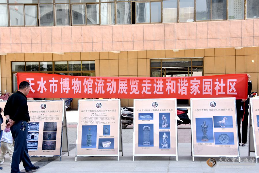 4月23日上午第二站,走進(jìn)天水市和諧家園社區(qū),開展博物館進(jìn)社區(qū)活動。本次活動采取圖文展覽和宣講活動結(jié)合《一畫開天 肇啟文明——人祖伏羲功績展》《天水市館藏精品文物展》等展板內(nèi)容。