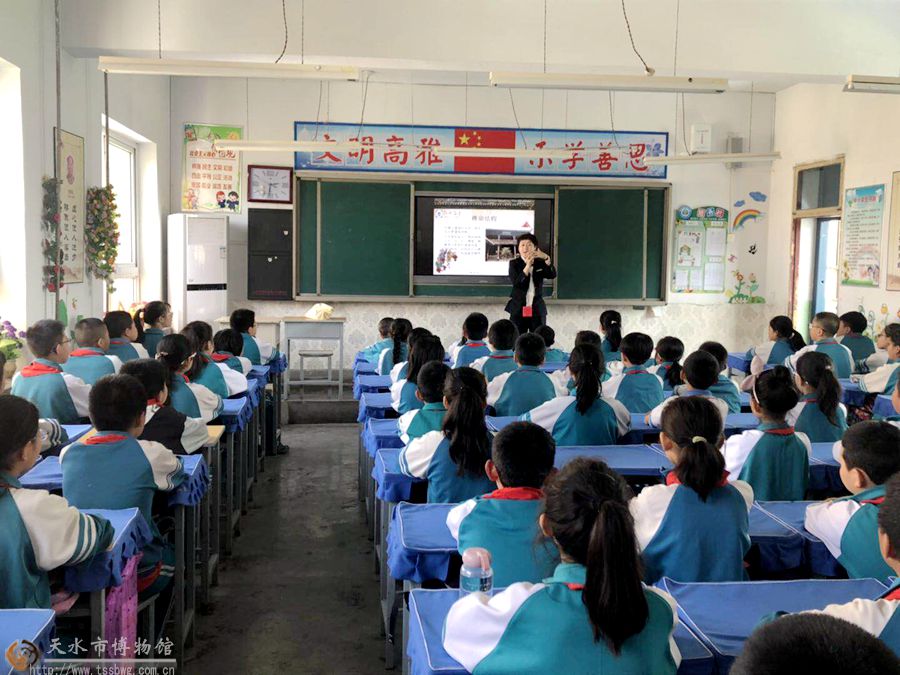 為了進一步發(fā)揮天水博物館社會教育功能,天水民俗博物館于4月30日下午,將社會教育課程“弘開學堂”和“民居民俗文化的博覽園”主題流動展覽送進了天水市暖和灣小學和自治巷社區(qū)。