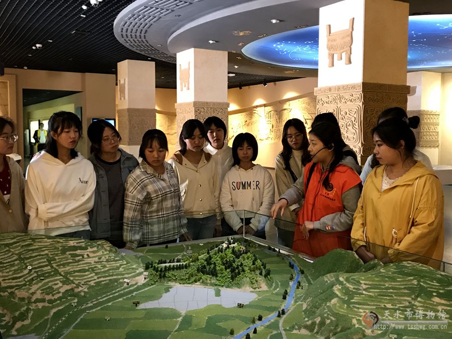5月16日下午,青年志愿者張先元、李丹、張曦元引導(dǎo)100多名文博專業(yè)大學(xué)生,依次參觀了伏羲廟、“匠心筑夢——天水市博物館文物保護修復(fù)成果展”、天水市博物館文物保護修復(fù)中心,協(xié)助文物修復(fù)專家開展現(xiàn)場教學(xué),帶領(lǐng)大學(xué)生了解了文物修復(fù)背后的故事。之后,志愿者張先元、李丹為來自五湖四海的大學(xué)生們精彩解說了伏羲廟及博物館展館,激發(fā)了大學(xué)生對天水文化的崇敬與熱愛之情。
