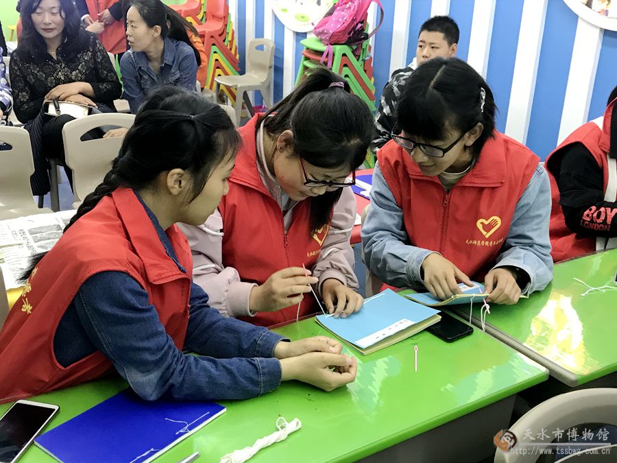 天水市博物館有一支以青年大學(xué)生為主體的志愿服務(wù)團隊。他們長期從事著歷史文物陳列展廳的引導(dǎo)與講解工作,為博物館帶來了一股無私奉獻的青春氣息。在今年的“5.18國際博物館日”,可愛的志愿者們?yōu)橛^眾講述天水厚重歷史文化的同時,集思廣益,策劃了“書聲瑯瑯”線裝書制作社會教育活動。