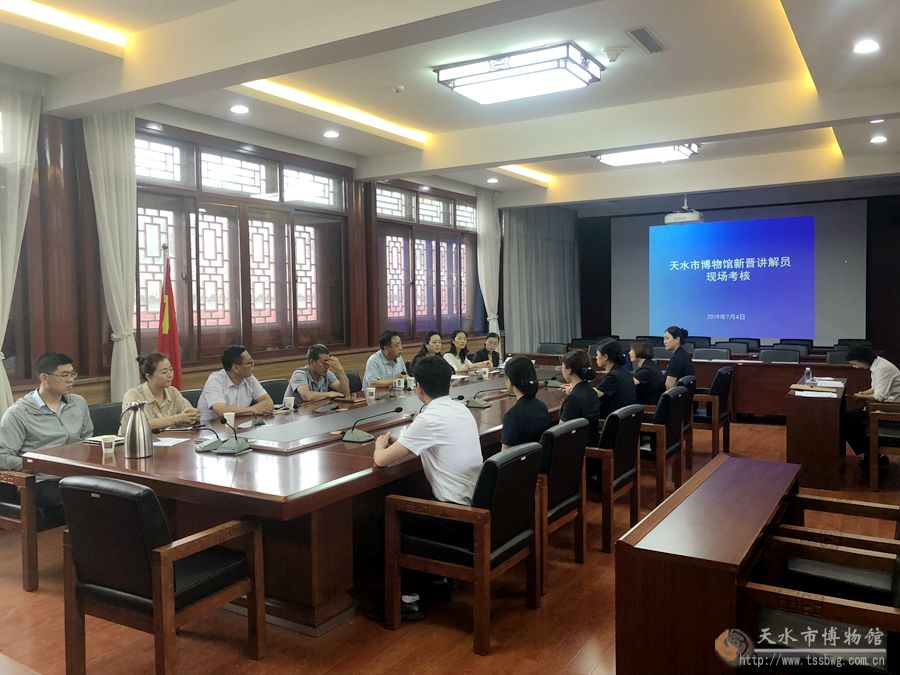 近年來(lái),隨著天水旅游業(yè)的大力發(fā)展,天水市博物館、天水市伏羲廟景區(qū)游客越來(lái)越多,對(duì)講解的需求不斷擴(kuò)大。為進(jìn)一步提升天水市博物館和天水伏羲廟講解接待服務(wù)能力,2019年4月,博物館面向社會(huì)公開招聘了6名講解員,吸納播音主持、表演、文博管理、教育學(xué)等專業(yè)的優(yōu)秀本科畢業(yè)生加入隊(duì)伍。目前,所有講解員完成了為期三個(gè)月的崗前培訓(xùn),并于7月3日進(jìn)行了招聘講解員的考核。