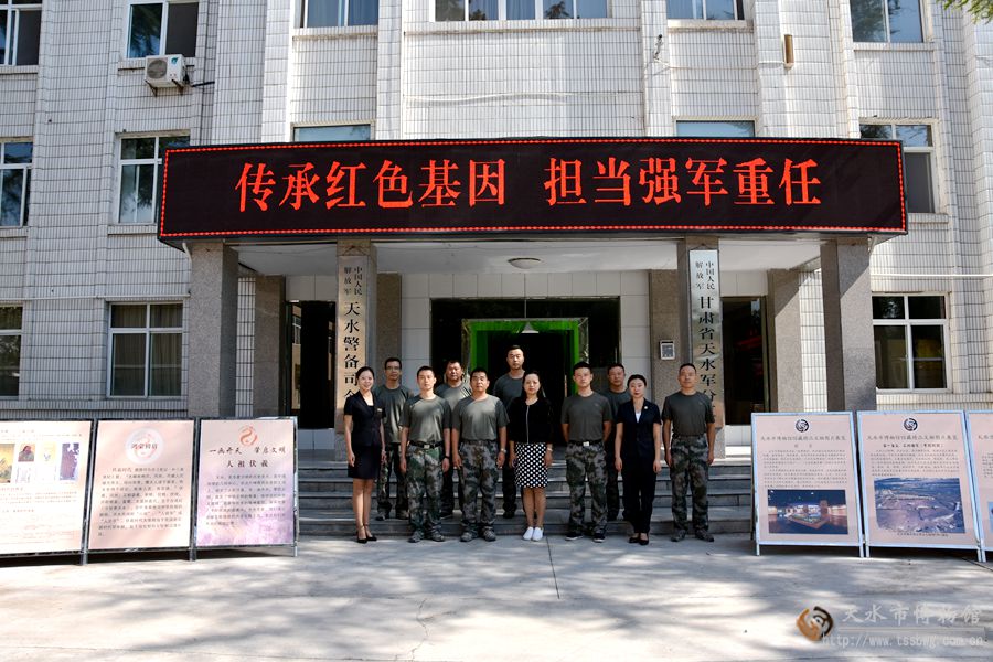 為紀(jì)念中國人民解放軍成立92周年,弘揚(yáng)擁軍愛民的光榮傳統(tǒng),鞏固雙擁建設(shè)成果,進(jìn)一步營造軍地雙方團(tuán)結(jié)協(xié)作、攜手共建軍民魚水情的雙擁氛圍,8月1日上午天水市博物館接待服務(wù)部工作人員在部室主任杜麗敏的帶領(lǐng)下,帶著全市380萬兒女的深厚情誼來到天水軍分區(qū),結(jié)合《一畫開天 肇啟文明——人文始祖伏羲功績展》、《天水市博物館館藏精品文物展》等展板內(nèi)容開展送文化、進(jìn)軍營“四進(jìn)”活動(dòng),在炎熱的夏日里為部隊(duì)官兵送去一份文化視聽盛宴,豐富廣大軍分區(qū)官兵的文化生活,進(jìn)一步加強(qiáng)了天水軍地文化融合,使伏羲文化走進(jìn)軍營、深入兵心,見證了軍民一家親的魚水深情。