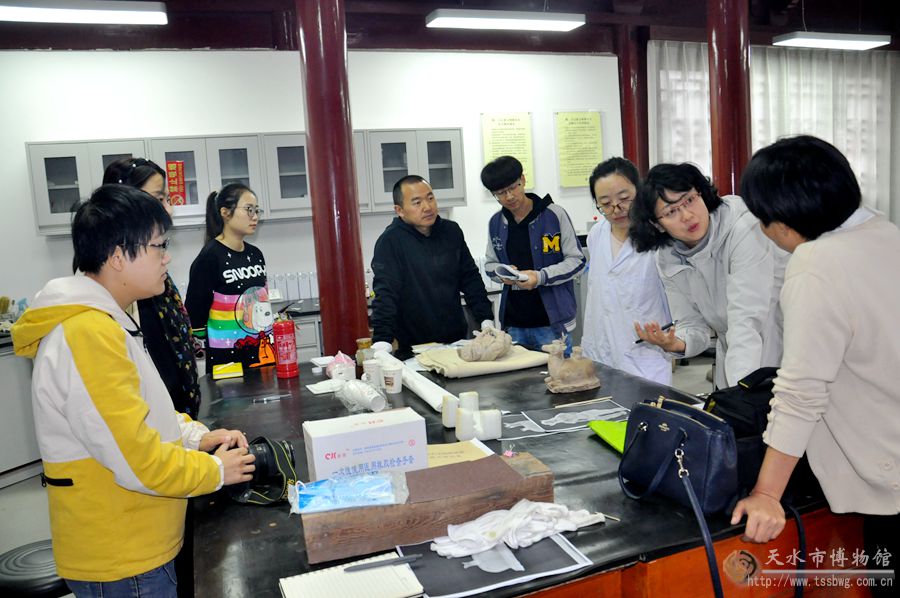 9月18日上午,陜西省文物保護研究院科技檢測分析中心主任王翀一行在該館修復(fù)中心實驗室對珍貴文物進行了現(xiàn)場取樣。取樣前,王主任同博物館修復(fù)中心工作人員針對每件文物的保存現(xiàn)狀以及病害的基本情況進行了詳細的交流討論,在保證不損害文物本體的前提下,確定需要采樣的部位后,由專業(yè)人員進行樣品采集。在此過程中,王主任一行還就如何科學(xué)取樣、拍照登記等對該館文物保護修復(fù)中心工作人員進行了現(xiàn)場培訓(xùn)指導(dǎo)。