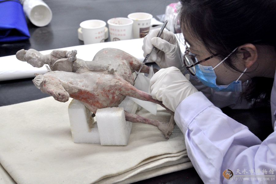為了更加準(zhǔn)確地掌握文物病害,為保護修復(fù)方案的編制提供科學(xué)依據(jù),天水市博物館委托陜西省文物保護研究院科技檢測分析中心對該館五件擬保護修復(fù)館藏一級文物春秋蟠螭紋銅鼎(總登記號:Z0859)、唐鎏金銅十一面觀音造像(總登記號:Z0983)、唐彩繪彈琵琶騎馬女陶俑(總登記號:Z1679)、唐彩繪吹排簫騎馬女陶俑(總登記號:Z1680)和唐彩繪武士陶俑(總登記號:Z1683),進行取樣分析檢測。